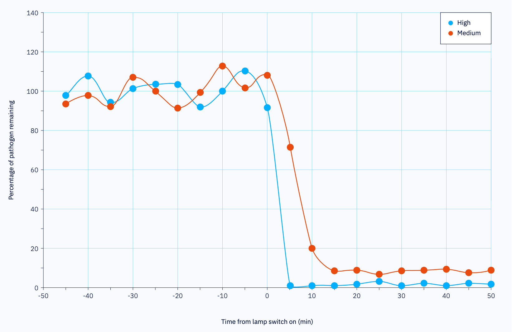 The properties of Far-UVC overcome these exact problems. It works directly on the air between people, neutralising germs right at the source. Plus, its effectiveness doesn’t depend on perfect air circulation, and it can even be fitted into existing light fixtures for a much simpler solution.